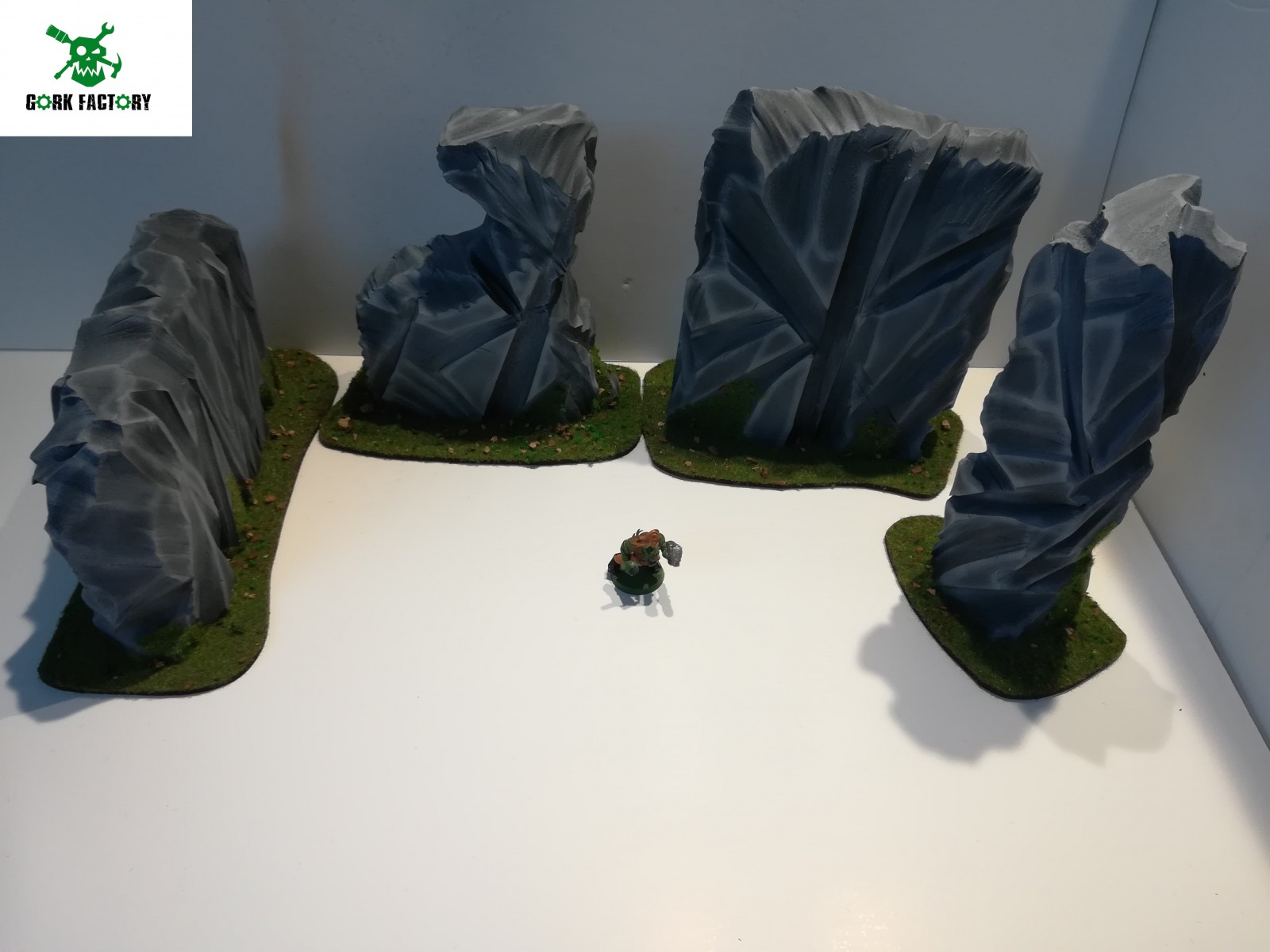 Les rochers sont peints avec des socles en bois floqués.