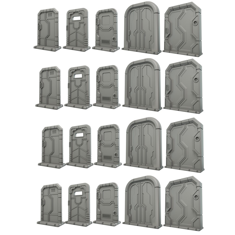 Cet ensemble contient 20 pièces de décor en plastique pré-assemblées, conçues pour les jeux de science-fiction de 28 mm, y compris 8 portes doubles et 12 portes simples. Les portes doubles mesurent 50 mm de diamètre et les portes simples mesurent 25 mm de diamètre.