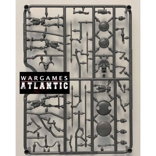 Ce coffret en plastique dur vous permet de construire jusqu'à 32 guerriers squelettes équipés d'un arc, d'une lance, d'une épée ou d'un brochet et avec des options pour une commande complète.