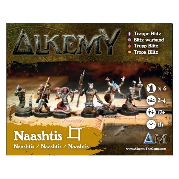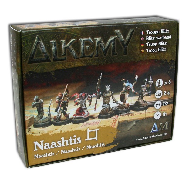Set Naashti qui comprend les figurines (Dar-Meh'ki, Waw Ouros, Klaph Ouros, Naa reitre, Maitre de l'eau foudre, Naa Sabreur) avec leur carte de profil et leur socle en plastique. Figurines non peintes et à assembler.