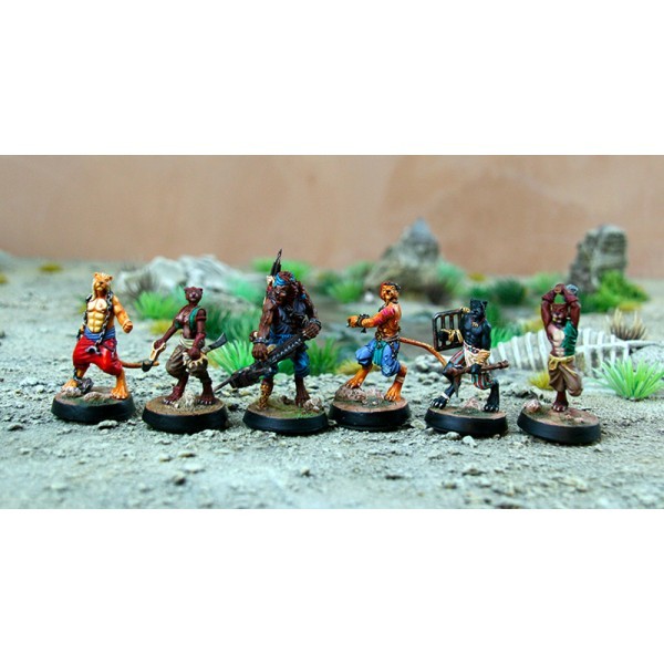 Troupe composée de 6 figurines en résine, fournies avec cartes de profils et socles plastique. Non peintes et figurines à assembler.
