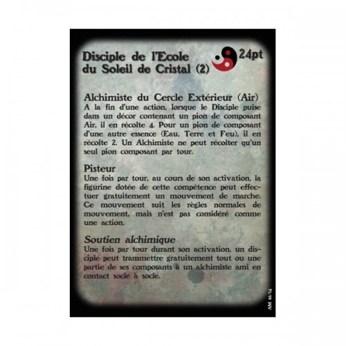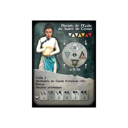 Fournie avec un socle en résine texturé rond de 1'', sa carte de profil et sa carte de formules pour le jeu Alkemy