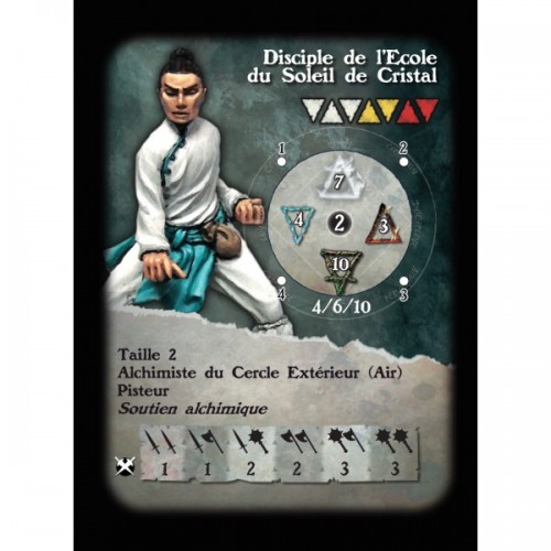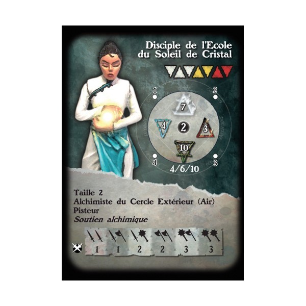 Fournies avec deux socles en résine texturés ronds de 1'', leur carte de profil et de formules pour le jeu Alkemy
