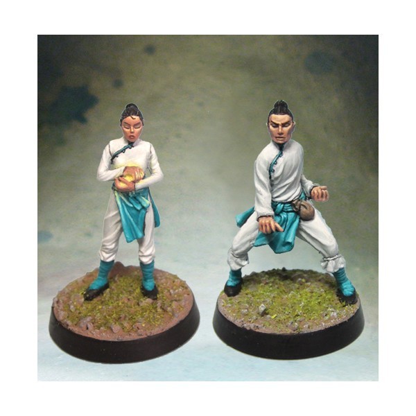 Lot de 2 figurines échelle 30mm en résine pour la faction Triade de jade, non peintes et à assembler.