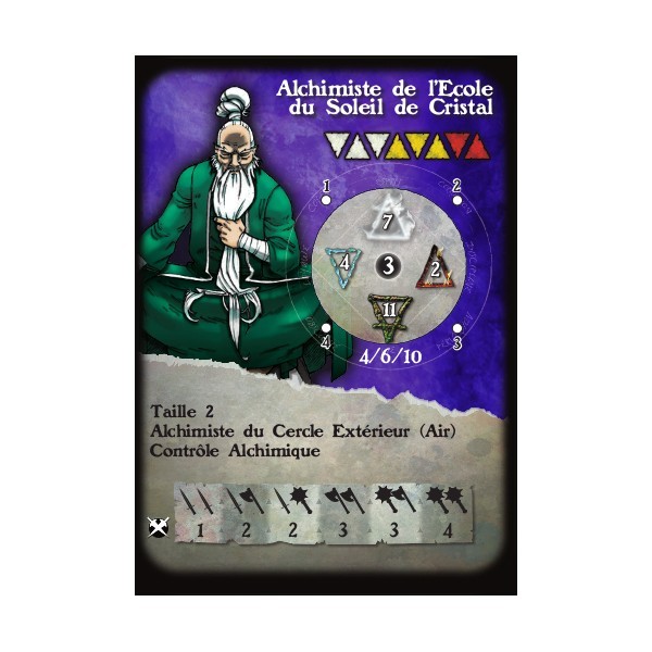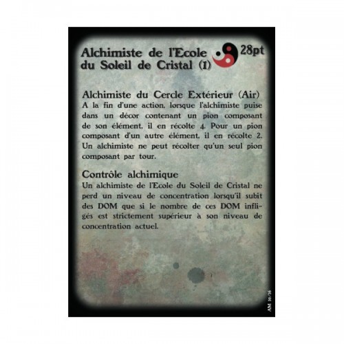 Fournie avec un socle texturé de 1'', sa carte de profil et sa carte de formules pour le jeu Alkemy