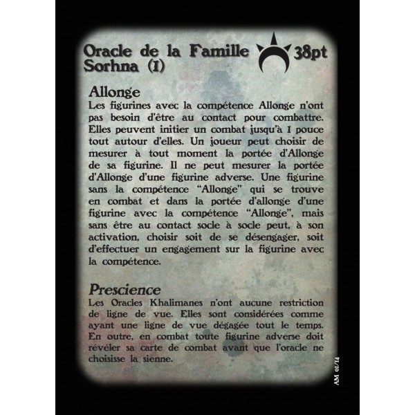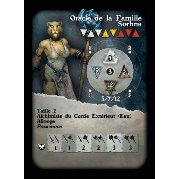 Fournie avec un socle en résine texturé rond de 1'', sa carte de profil et sa carte de formules pour le jeu Alkemy