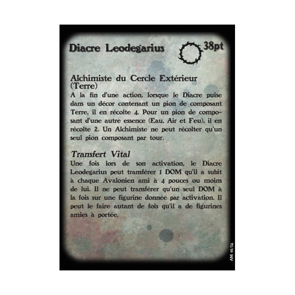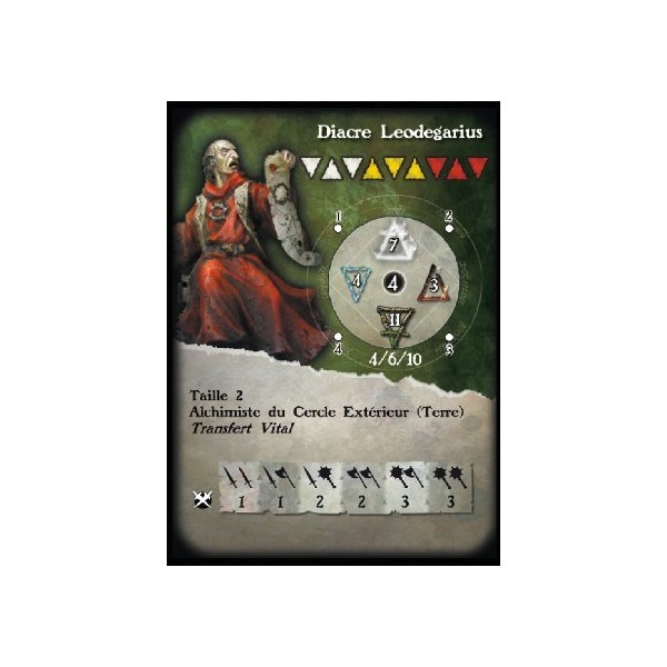 Fournie avec un socle en résine texturé rond de 1'', sa carte de profil et sa carte de formules pour le jeu Alkemy
