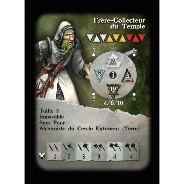 Fournie avec un socle en résine texturé rond de 1'', sa carte de profil et sa carte de formules pour le jeu Alkemy