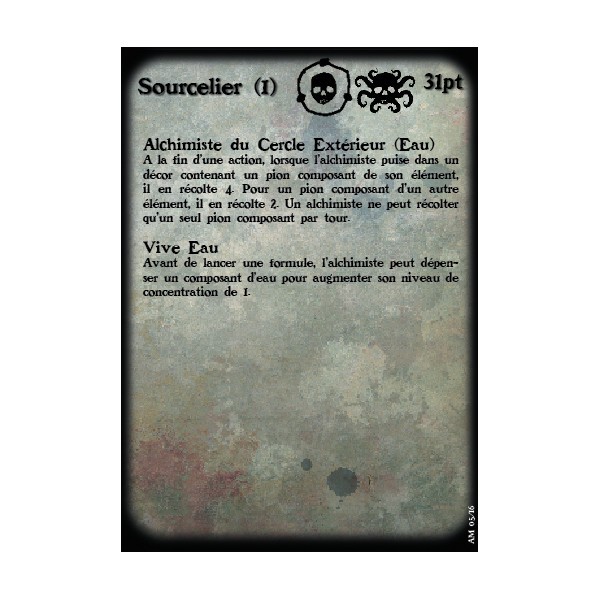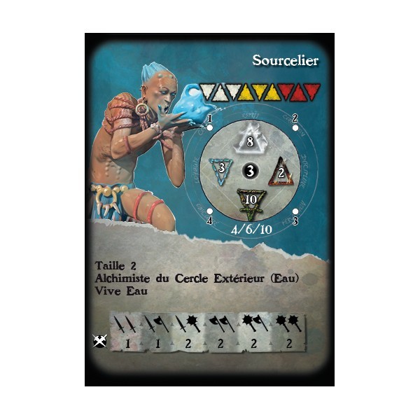 Fournie avec un socle en résine texturé et sa carte de profil pour le jeu Alkemy.