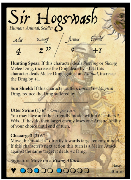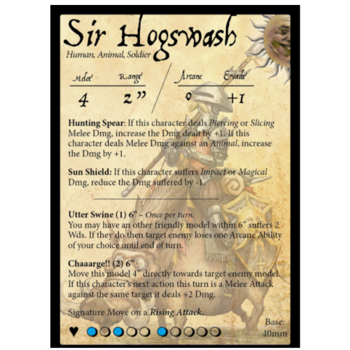 1 x carte miniature et statistique Sir Hogswash