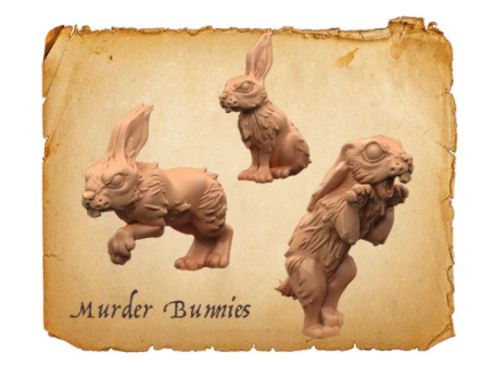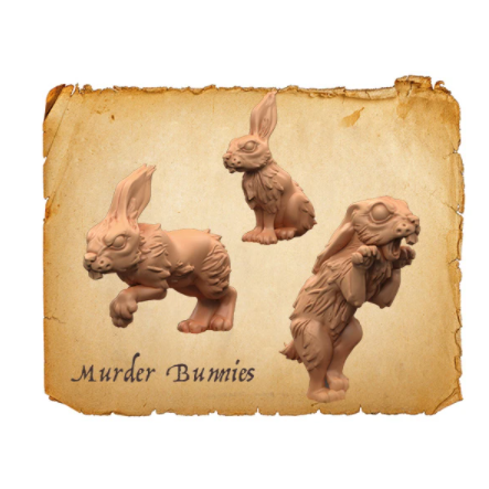 3 x Murder Bunny Miniatures avec Stat Cards