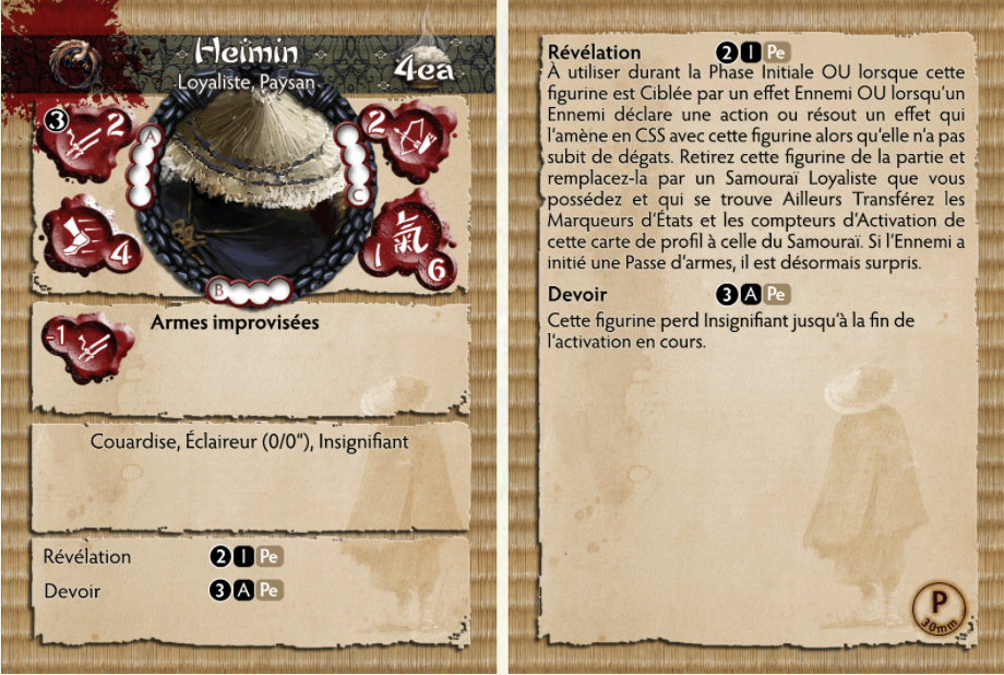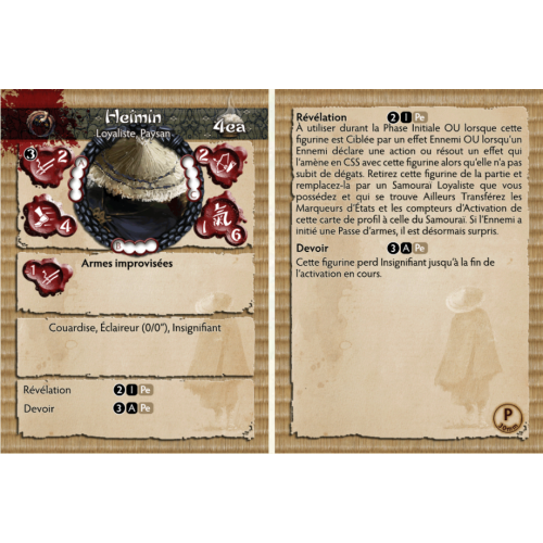 Ainsi, en alignant trois d'entre eux, les adversaires sont obligés de jouer comme s'ils étaient tous des samouraïs jusqu'à ce qu'ils se dévoilent, et vous pouvez décider pendant le jeu qui, le cas échéant, sont des samouraïs et lesquels sont des paysans inoffensifs. Combiné avec le trait Flank omniprésent des Shiho Samurais, c'est un moyen puissant de contrôler où le combat aura lieu.