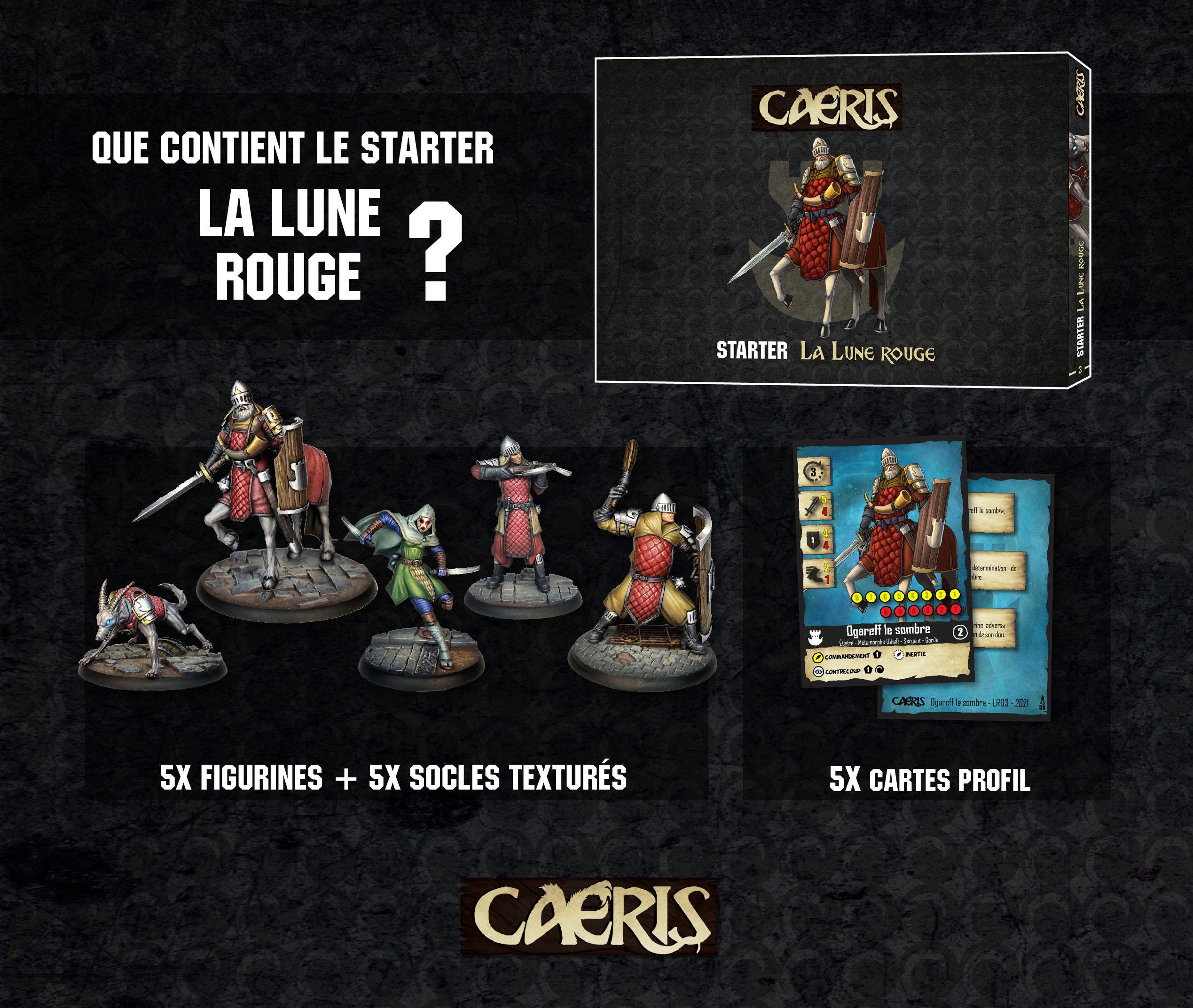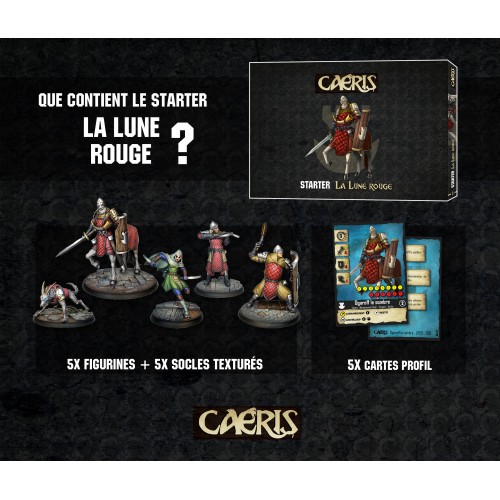 Cette boîte de démarrage, pour le jeu Cæris, contient des figurines en résine de très grande qualité, finement sculptées ainsi que leur socle texturé et carte de jeu. Elle vous permettra de constituer une bande complète pour jouer la guilde de la Lune rouge.