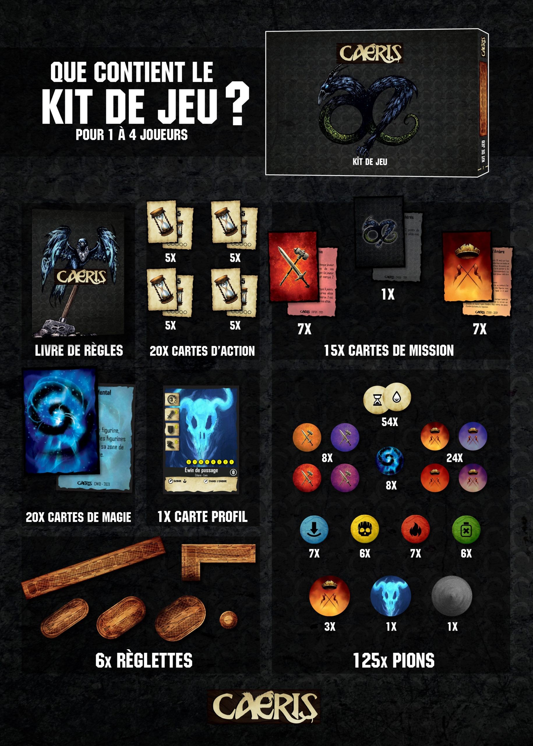 -- marqueurs et pions pour représenter les différents effets en jeu.