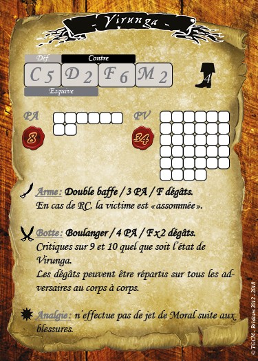 Capturé par les Orénauques, le puissant Virunga crut devoir se résoudre à finir sa vie en esclavage jusqu'au jour où il fut libéré par l'intervention inopinée de Saguis.