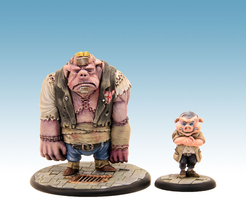 1 Collosse sur socle de 80mm, 1 figurine sur socle de 40mm et leur carte de profil. Sculpture et peinture (Frankenchon): W. Mordefroy. Sculpture (Igoret): W. Mordefroy / Peinture (Igoret): Emmanuel Pontié.