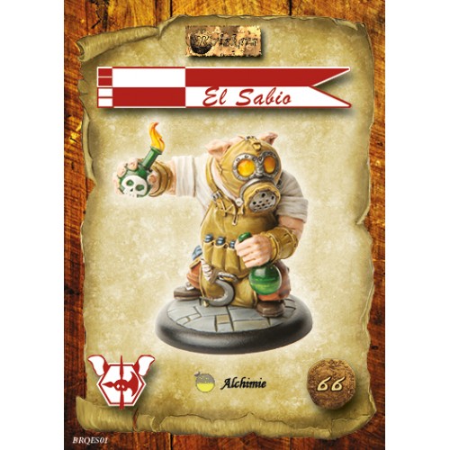 Après des années passées à étudier au sein de la guilde des Alchimistes à Cantera, El Sabio a rejoint les forces expéditionnaires Quintors où son talent pour les potions et le déchiffrage des anciennes cartes sont très appréciés par ses compatriotes.