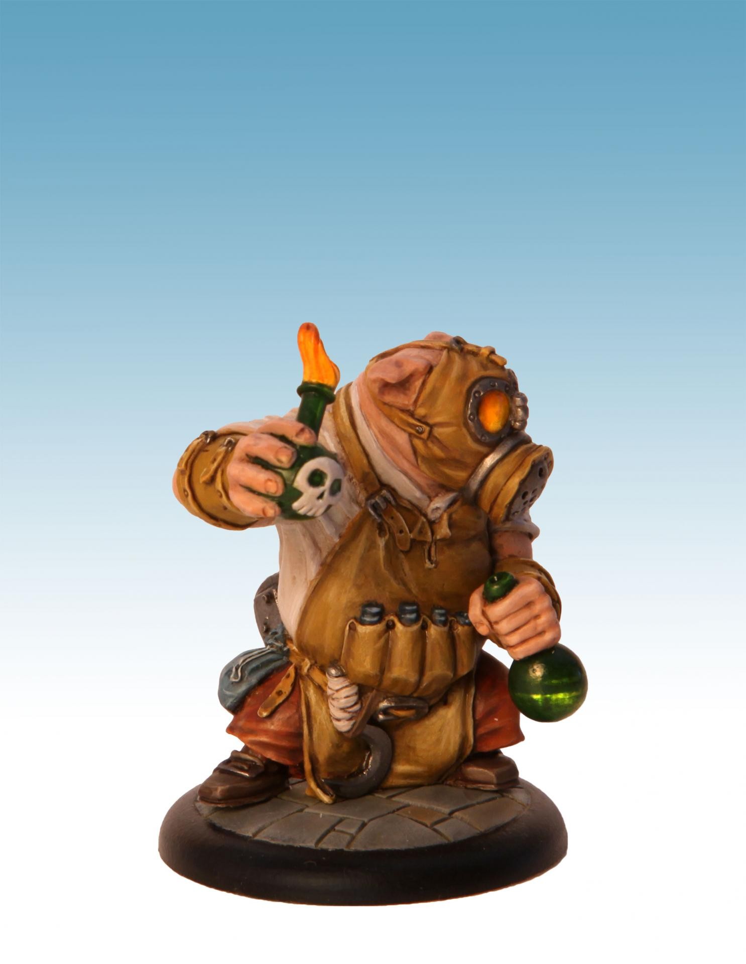 Figurine résine au 54mm, son socle texturé de 40mm, sa carte de profil et ses 2 sorts. Sculpture et Peinture : W. Mordefroy.