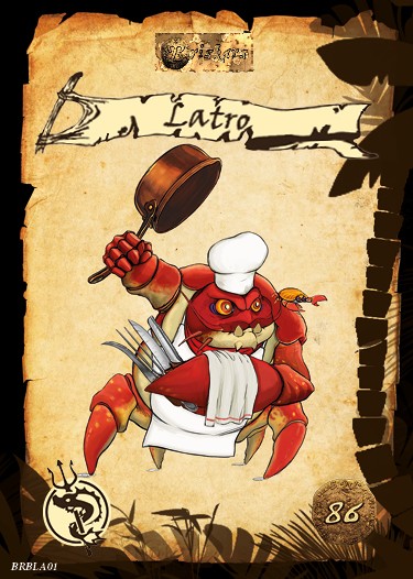 Doté d'une Constitution et d'une carapace solides comme tous ses congénères, Latro apporte les dégâts de feu aux Bannis, mais surtout va permettre de renforcer encore d'avantage l'un de ses comparses tout en permettant à la bande qui le recrute de ne pas partir au combat le ventre vide...