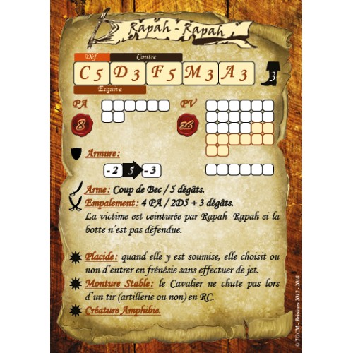 Cavalier et Monture au 54mm sur socle de 80mm, Figurine au 54mm sur socle de 40mm et leurs cartes de profil. Sculpture et peinture Rapah Rapah et Miller : Emmanuel Pontié. Sculpture Miller: W. Mordefroy.