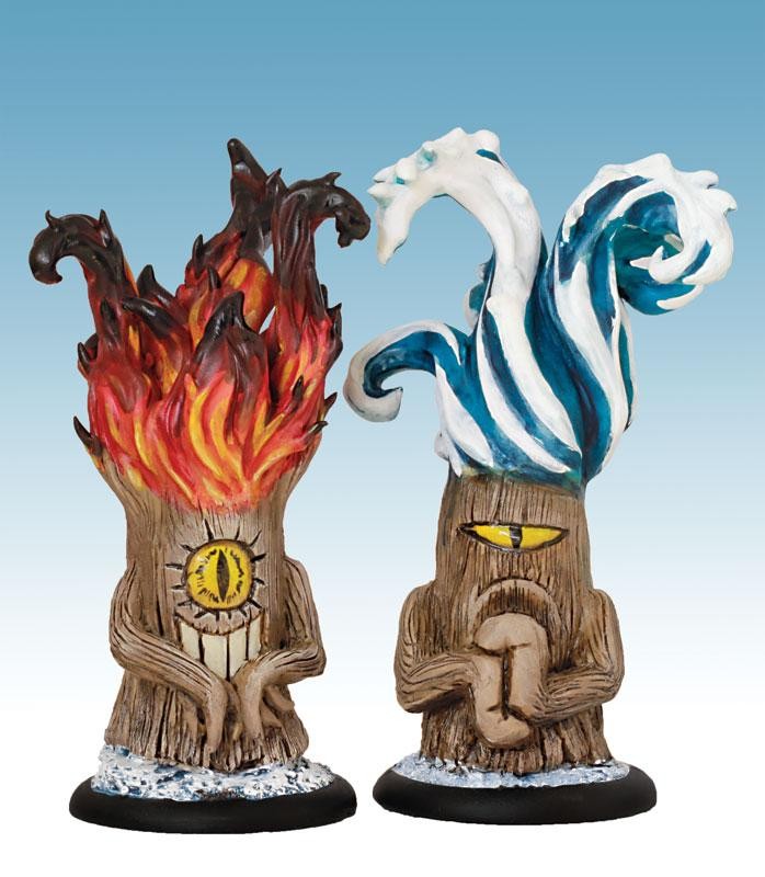Ces 2 Figurines sont livrées avec les cartes de profils de "Fétiches" qui leur permettent d'être recrutées par les magiciens maitrisant le totémisme. Elles servent aussi à symboliser les "totems-jambe" de l'Aberration totémique dont les cartes de profil sont fournies dans le coffret de L'Aberration.