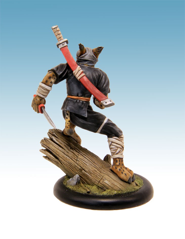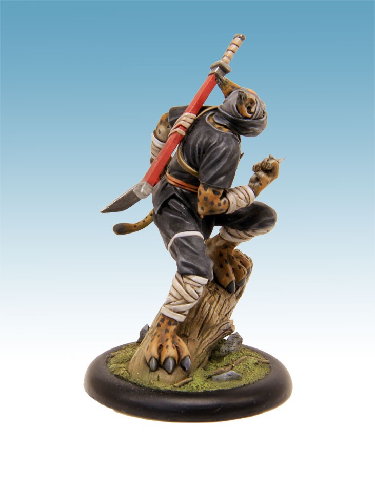 Figurine résine au 54mm, son socle texturé de 40mm, sa cartes de profil et de stratégie. Sculpture: Raphaël Banguet Peinture : W.Mordefroy.