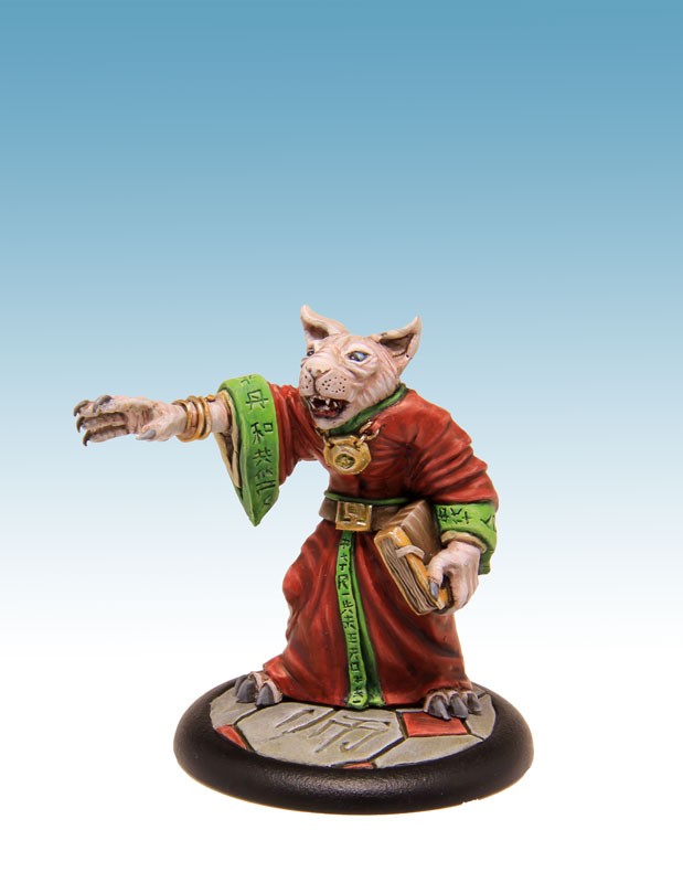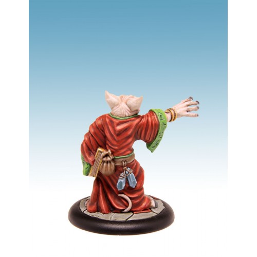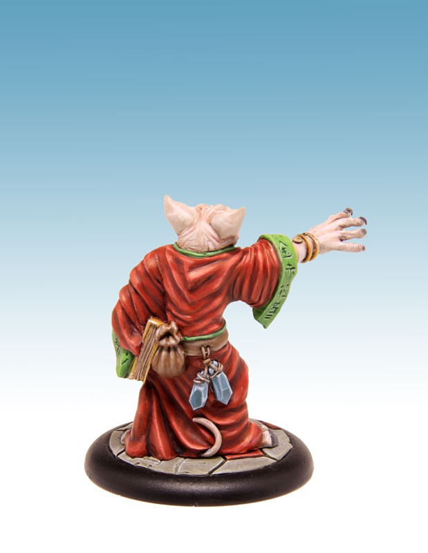 Figurine résine au 54mm, son socle texturé de 40mm, sa cartes de profil et un sort. Sculpture et Peinture : W.Mordefroy.