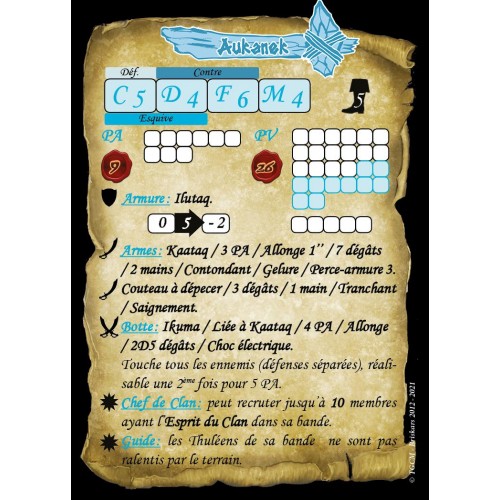 Figurine résine au 54mm, son socle texturé de 40mm , sa carte de profil et ses cartes de stratégie. Sculpture et peinture : Emmanuel Pontié.