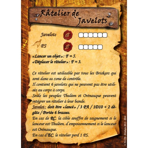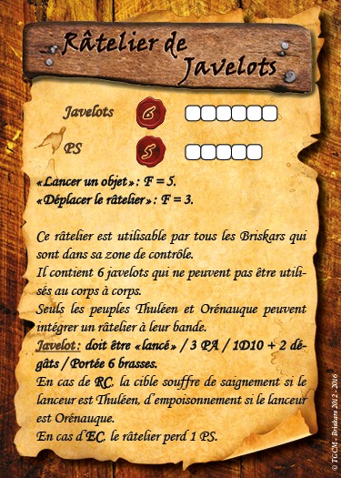 Ce râtelier est un atout fort utile qu'on soit Orénauque ou Thuléen, ils maitrisent le côté un peu tribal de ces armes de jets.