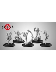 La boîte contient cinq figurines  fournies avec  des socles de 30 mm et  dix cartes en couleur.