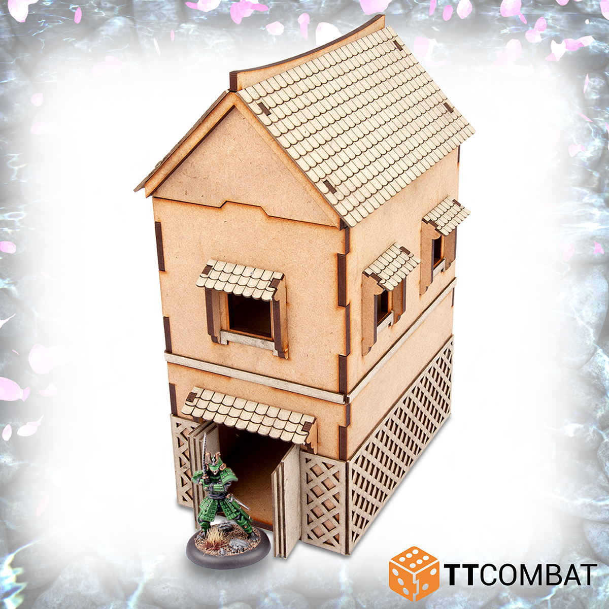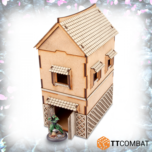 Cet ensemble contient un entrepôt Kura, un bâtiment de taille moyenne à deux étages avec des barils de saké ! Un excellent ajout à un quartier résidentiel sur une planche.