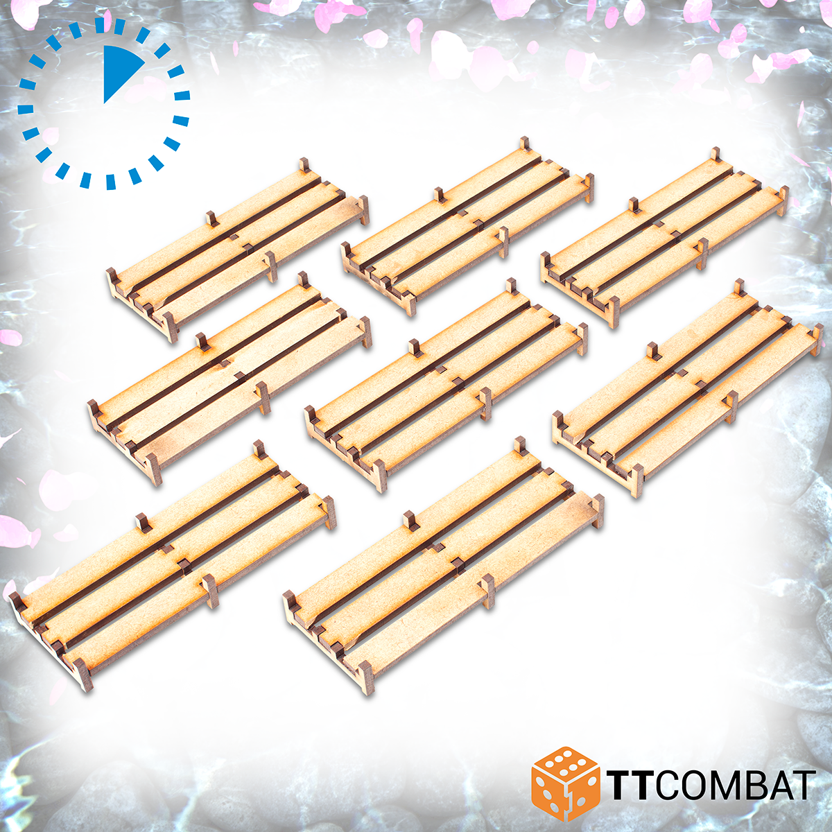 Cet ensemble contient huit sections de passerelle en bois. Idéal pour ajouter ce petit détail supplémentaire à une rizière ou sur une étendue d'eau peu profonde.