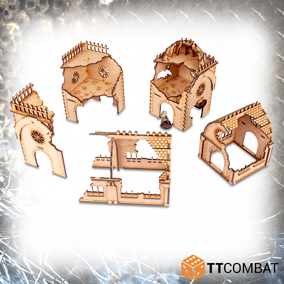 Les ruines du couvent sont un kit multipièces, qui aurait fière allure sur votre table de guerre ! Autrefois une maison de prière, c'est maintenant l'endroit pour tenir la ligne avec vos troupes ! Chaque partie offre un excellent blocage de la ligne de vue et avec des étages supplémentaires, vous pouvez gagner la terre sacrée, c'est-à-dire les hauteurs ! Composé de plusieurs structures, ce kit est parfait pour être condensé en un seul bâtiment ou étalé pour couvrir plus de votre planche ! C'est ta décision.