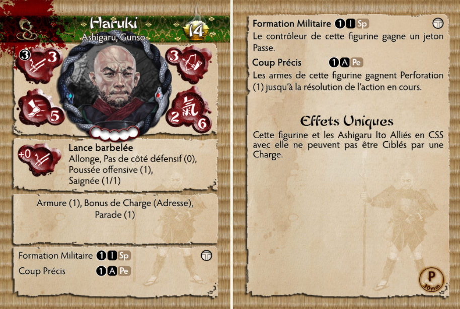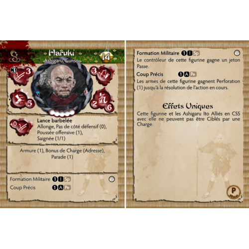 Les Ito ne promeuvent en Gunsos les Ashigaru les plus compétents et attendent des soldats sous leur commandement qu'ils apprennent d'eux. Haruki utilise sa lance comme on l'enseigne depuis des centaines d'années dans l'empire mais son style est mal vu par les autres clans, la conception barbelée de l'arme provoquant une mort lente et atroce. Haruki et ses Ashigaru sont à la fois intrépides et prêts à affronter la charge des ennemis les plus puissants.
