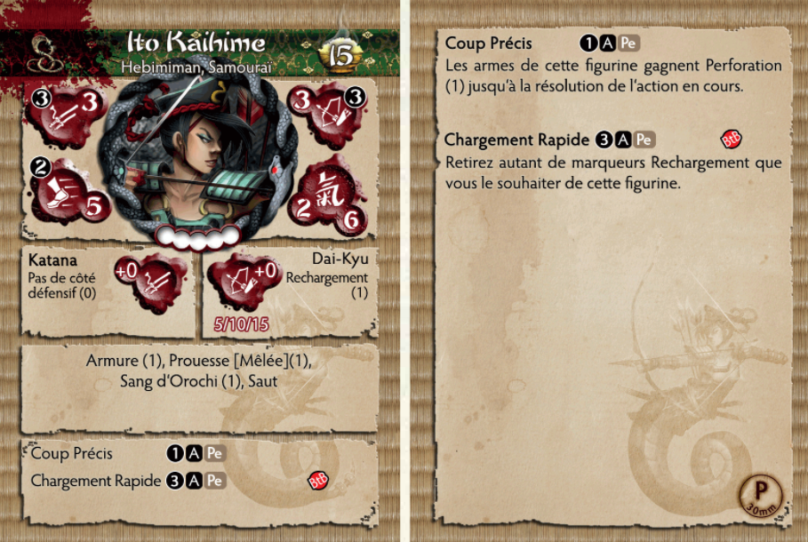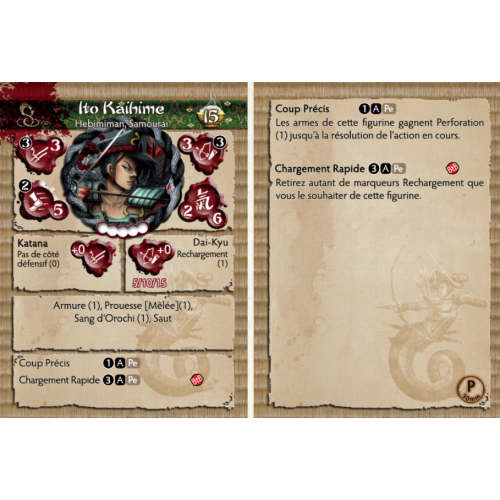 Orochi a trouvé Kaihime un digne destinataire de ses cadeaux et a accordé à cet archer samouraï mortel les moyens de mener à bien sa volonté. Son œil vif et son bras rapide cousent mort sur le champ de bataille. Ses flèches se frayent un chemin à travers les armures Minimoto les plus résistantes et si l'acier froid d'Ito ne termine pas ses cibles malchanceuses, le sang d'Orochi les dévore bientôt de l'intérieur, laissant ceux qui prient pour une fin rapide.