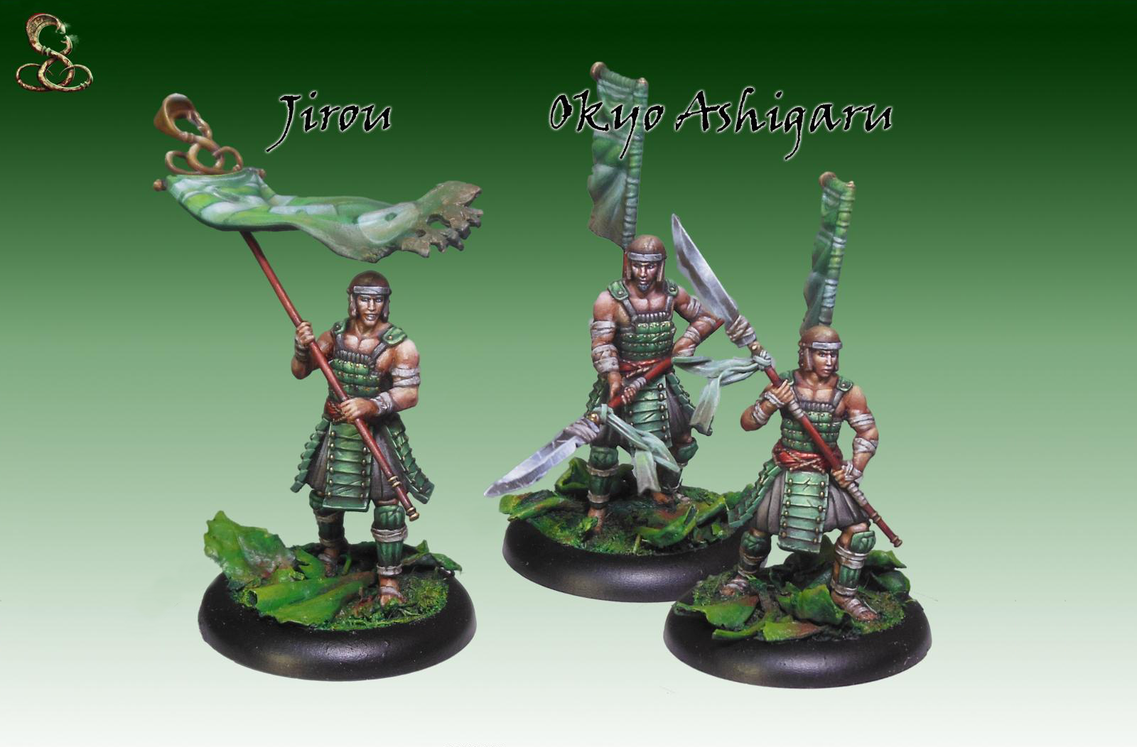Les Ashigaru sont le pilier des maisons de Jwar, constituant l'essentiel de toutes les forces militaires des clans majeurs et mineurs. Comme on pouvait s'y attendre, ils personnifient les enseignements et les pratiques martiales de leurs seigneurs. L'Ours est fort et dur, le Dragon, foré et courageux et le Serpent lâche mais rusé. Utilisant leur nombre à leur avantage lorsqu'ils combattent en tant qu'unité, ils sont un ennemi redoutable.