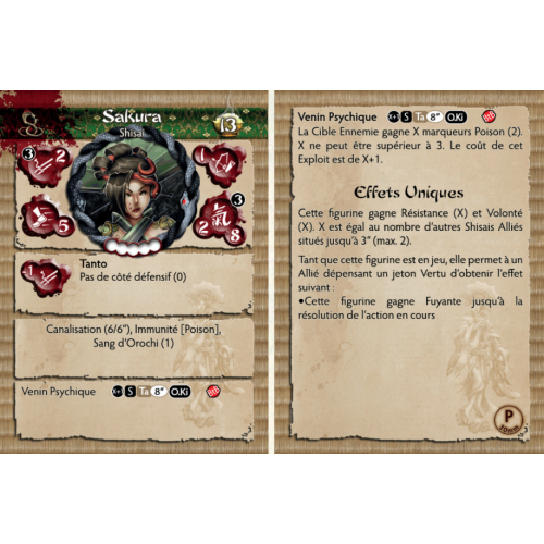 Prêtresse d'Orochi, elle a consacré sa vie au serpent kami et a été favorisée en commençant la transformation. Avec le moindre regard, Sakura peut corrompre un homme, transformant le sang qui coule dans ses veines en poison.