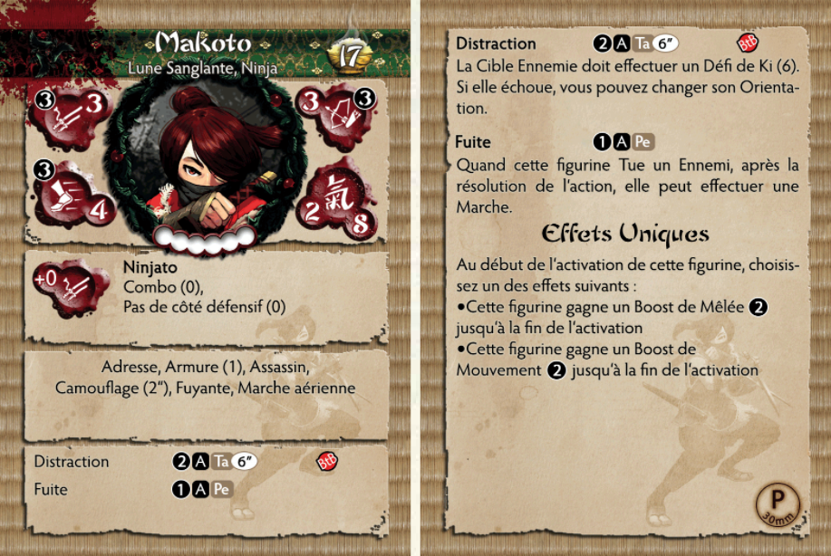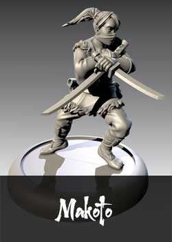 Makoto se bat sous la maison de la lune saignante pour le clan Shadow Wind. Sur le champ de bataille, elle est partout et nulle part à la fois. Les ennemis ont du mal à la suivre au corps à corps et ceux qui tentent de riposter au milieu de son assaut découvrent souvent qu'elle est déjà partie. Aussi mortelle qu'elle est belle, son visage est la dernière chose que beaucoup verront.