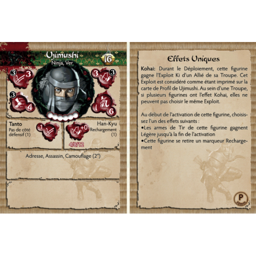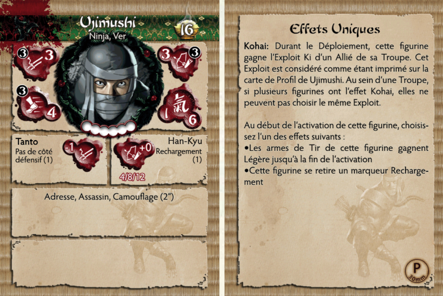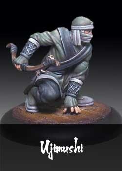 Comme tous les novices du Kage Kaze Zoku, Ujimushi est entraîné sans pitié et sans relâche dans les arts du Kage. Bien qu'adepte de toutes les armes martiales Zoku, il a choisi l'arc court comme arme de prédilection. Lors de missions, il s'efforce de maîtriser les compétences du ninja vétéran avec lequel il sert, imitant et pratiquant leurs mouvements pour l'aider dans sa propre formation.