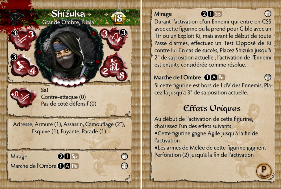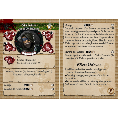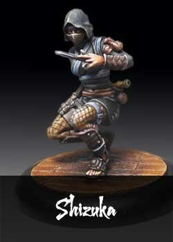Shizuka est une maîtresse des ombres, sa personnalité prudente garantit que sa mission idéale se déroule proprement et sans contact avec l'ennemi.
