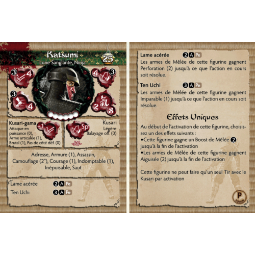 Considéré par beaucoup au sein du clan comme le corbeau de l'ombre le plus redoutable au combat. Katsumi est un maître des armes, avec un goût pour utiliser tout ce qui est à sa disposition pour faire couler le sang de ceux qui s'opposent au Kage Kaze Zoku. Il est devenu un adepte à un âge incroyablement jeune, son équipe s'est formée avec peu de méticulosité des autres. Ses camarades vers ont intimidé de le rejoindre et en vérité ils n'étaient pas prêts. Katsumi les mena dans une attaque ouverte et frontale contre un adepte, d'une certaine expérience, son assaut sanglant ne durant que quelques instants sous les yeux des membres de son équipe. Ils n'ont pas duré longtemps en tant qu'adeptes, leurs faiblesses étant évidentes pour les vers qui restaient. Katsumi n'a cependant jamais fait l'objet d'une attaque par une escouade de vers, sa redoutable réputation bien méritée et incontestée.