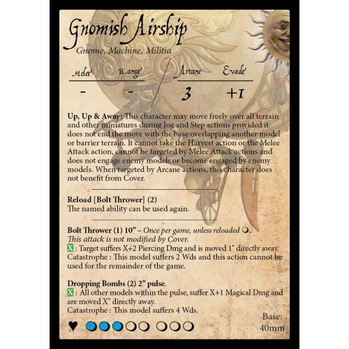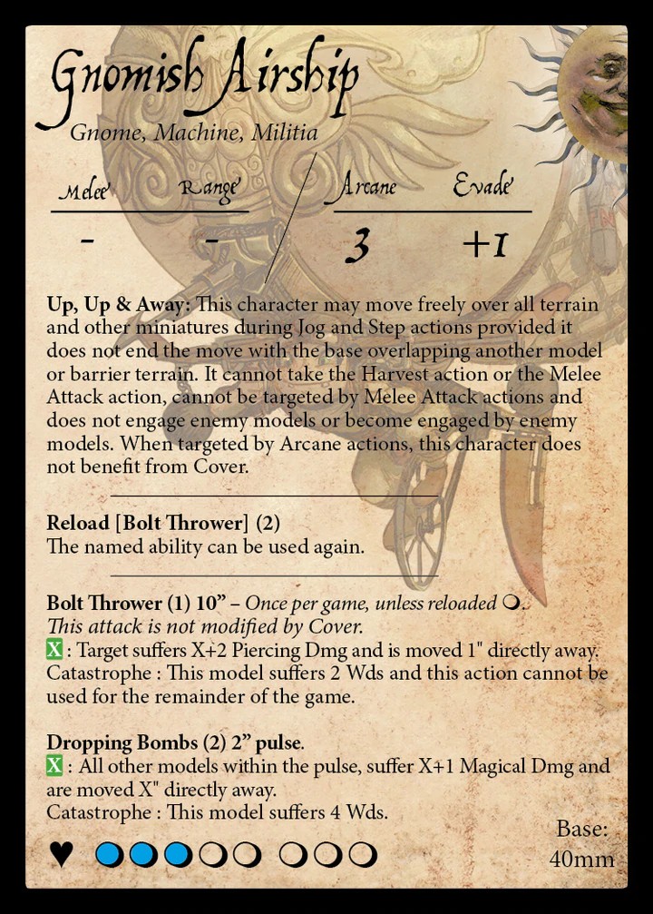 1 x dirigeable gnome avec carte de statistiques et base de dépliant