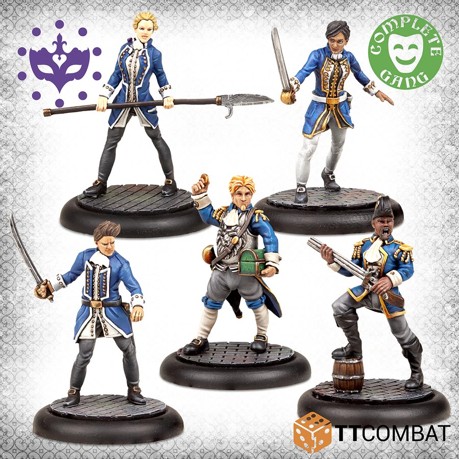 Nouvel élément fort des Patriciens, la marine vénitienne ajoute de la flexibilité et de la puissance à votre collection. Un gang complet dans une boîte, mené par un Sopracomito qui paye les factures. Il est soutenu par un lieutenant de marine (avec un pistolet à encoche à l'allure méchante) et un enseigne navale, qui a gravi les échelons. Deux recrues navales complètent le gang, ajoutant des combats aquatiques capables aux Patriciens.