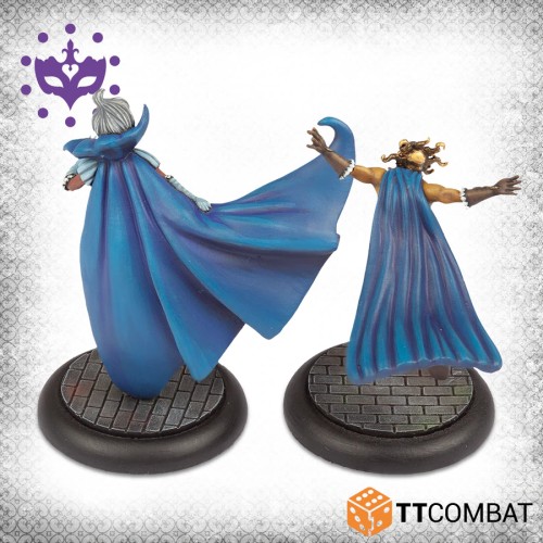 Contient 2 figurines en résine et 2 socles en plastique. Bases en pierre de C illustrées non incluses.