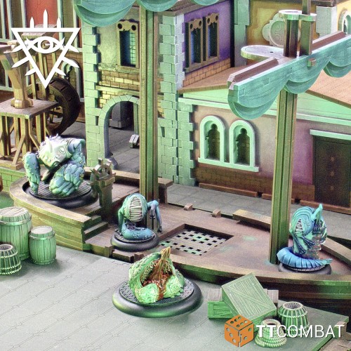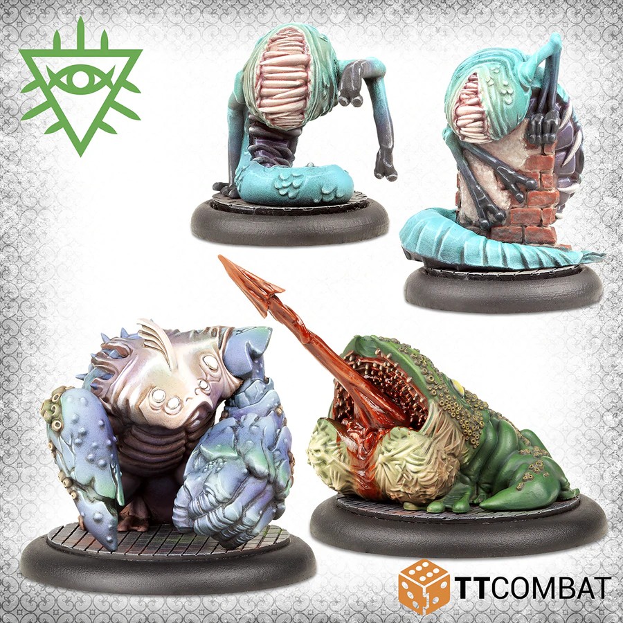 Ces Rashaar sauvages offrent quelque chose d'assez inhabituel aux adeptes de Dagon. Tous sont élevés délibérément pour effectuer une seule tâche, avec très peu de fonctions mentales supérieures. Les Hellhounds sont les plus doués pour escalader les murs, ce qui est très utile à Venise ! Pendant ce temps, un Cymothoan Crusher excelle à abattre les murs (et les gens) ! Enfin, le Bulbous Toad est la réponse du Rashaar aux ennemis embêtants qui se cachent sur le toit. Lancez-les avec sa langue et faites-les glisser !