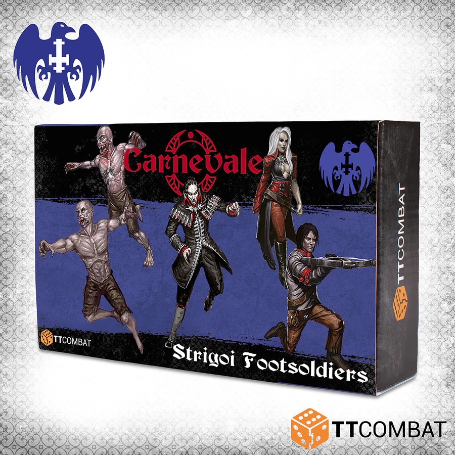 Cette boîte contient un excellent boost pour n'importe quel gang Strigoi. Avec deux Strigoi communs pour tenir la ligne, ce sont des hommes de main qui, dans n'importe quel autre gang, seraient des héros. Ils sont aidés par un seul Thrall armé d'une arbalète pour les dégâts à distance et la capacité de donner des points de vie Strigoi. Enfin deux Reapers complètent le set : des berserkers d'une férocité inégalée, rapides et mortels pour tous sauf les ennemis les mieux protégés.