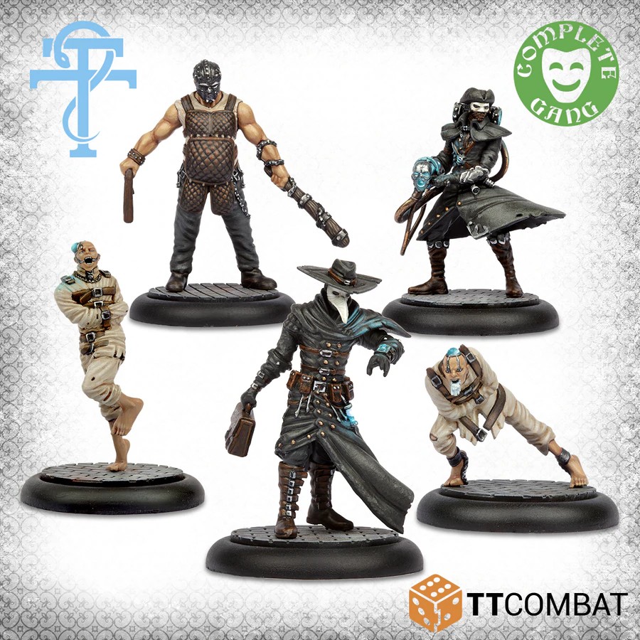 Cette boîte est un démarreur parfait pour un gang de médecins. Un médecin de la peste est un mage spécialisé, un gardien brutal et un médecin de l'arsenal avec un puissant pistolet à longue portée qui tire sa puissance des deux fous. Une force de médecins se concentre sur les utilisateurs de magie dangereux qui ont besoin d'hommes de main inefficaces pour alimenter leurs sorts eldritch.