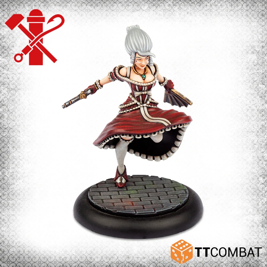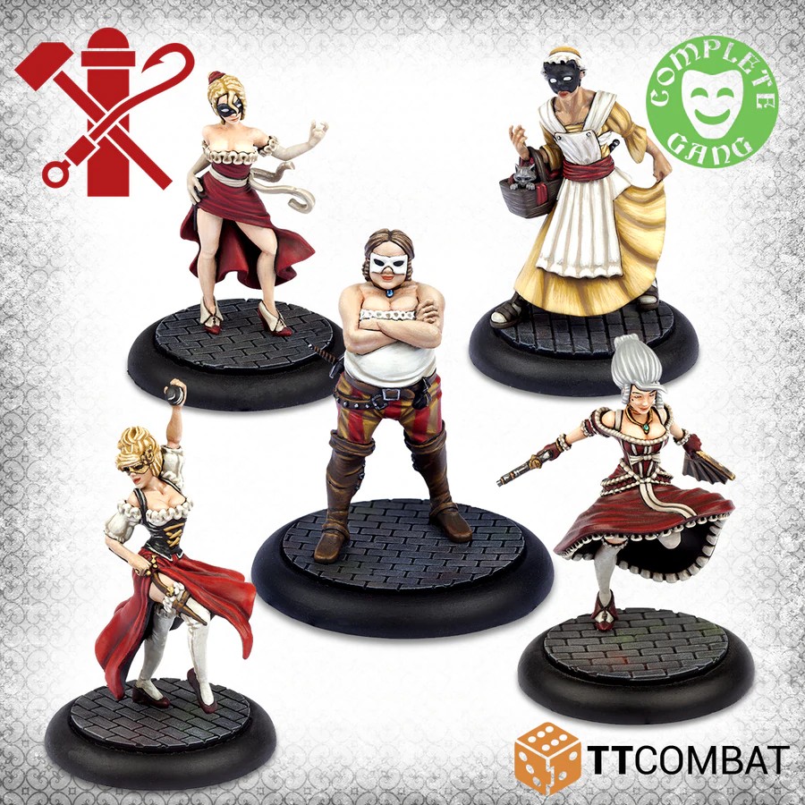 Cette boîte contient un gang complet pour Carnevale. Une Madame mène la charge avec une énorme réserve de points de commandement, les deux prostituées peuvent assassiner n'importe qui lorsqu'elles sont de retour, et l'escorte fournit un peu plus de muscle. Enfin, la danseuse est capable de communiquer en silence avec ses pairs, organisant le gang en toute sécurité.