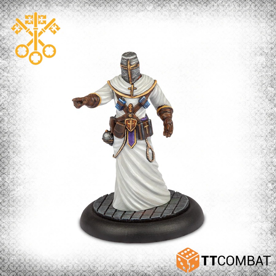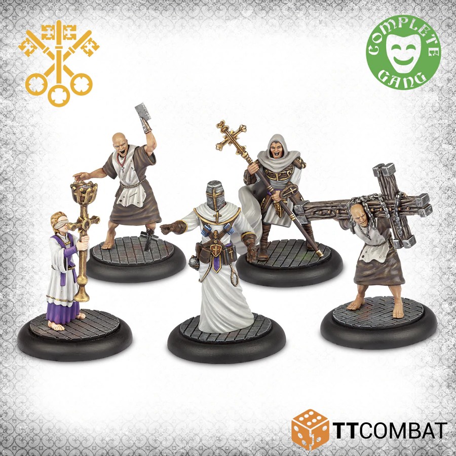 Cette boîte fournit un fantastique gang du Vatican en soi, ou une extension utile aux forces existantes. L'Exorciste dissipe la magie ennemie presque sans égal, ouvrant la voie aux deux Martyrs fous pour charger leurs adversaires. Stimulé par l'encens brûlant du garçon d'autel et la sainte présence du diacre porte-croix, ce gang est fiable et extrêmement agressif.