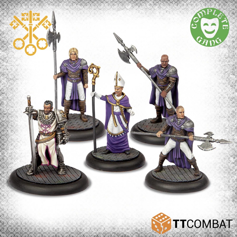 Si vous cherchez un gang de durs à cuire, ne cherchez pas plus loin que cette boîte ! Le patriarche Bishop de Bernis est un chef unique doté d'une capacité magique incroyable. Il est suivi de pas moins de trois Bishop Guards armés de hallebardes. Pour un vrai pouvoir, la Garde d'Avignon a été envoyée du Vatican, vêtue d'une armure de plaques complète et brandissant une grande épée massive.